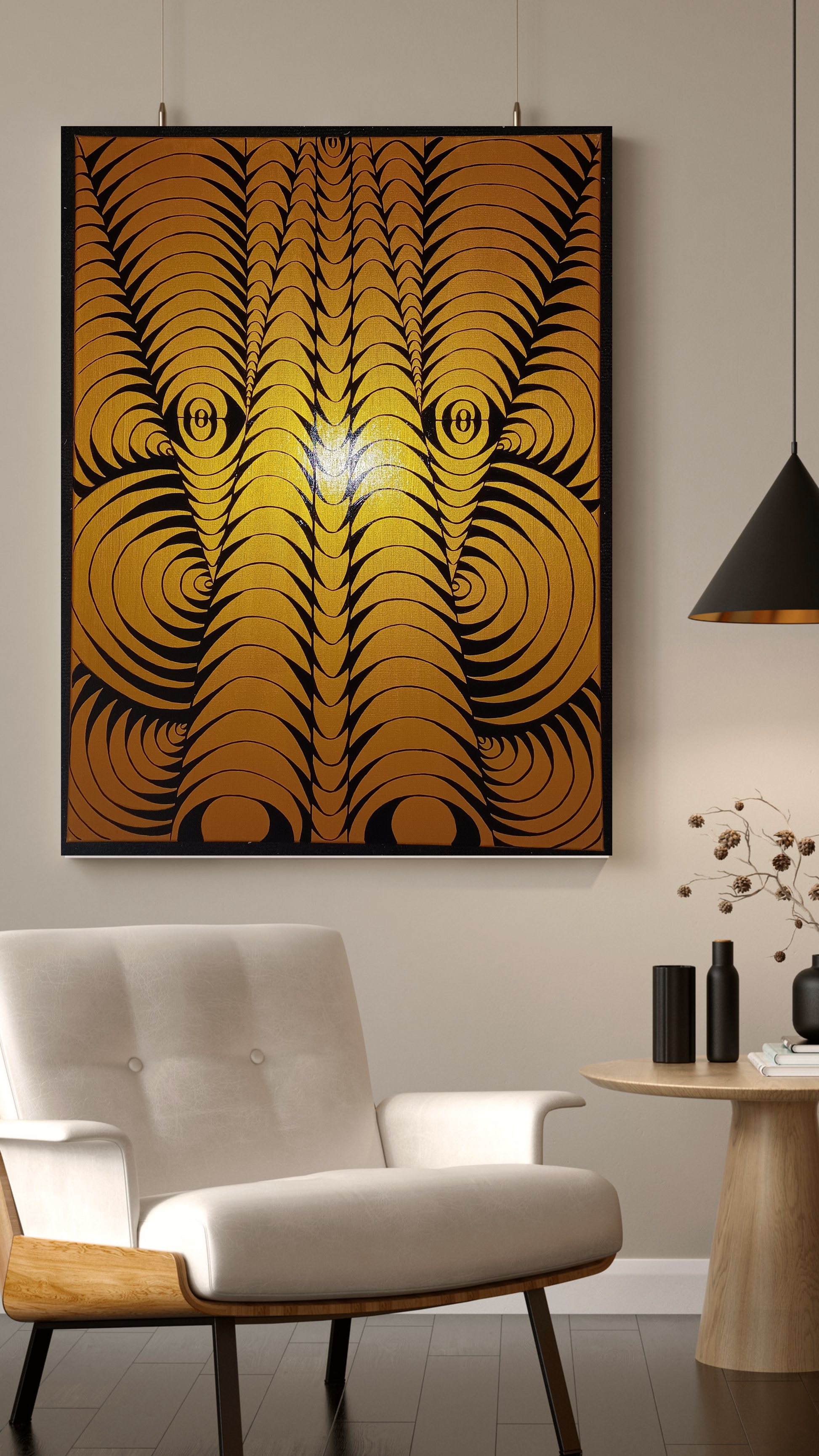 “Untitled Energy” is a "30x 40" hypnotic fusion of gold and black, with layered symmetry and rhythmic curves that create a sense of motion, depth, and intentional chaos. This piece brings both luxury and mystery to any home, hotel lobby, office suite, or creative commercial space.