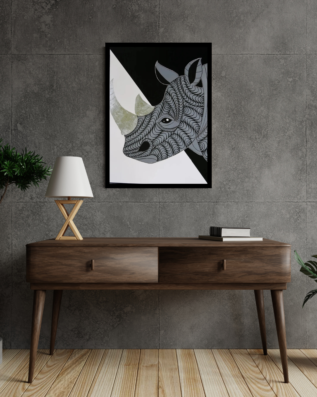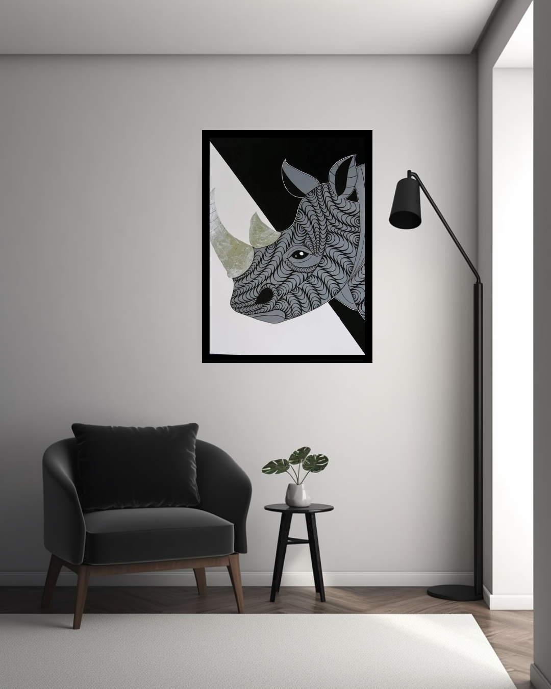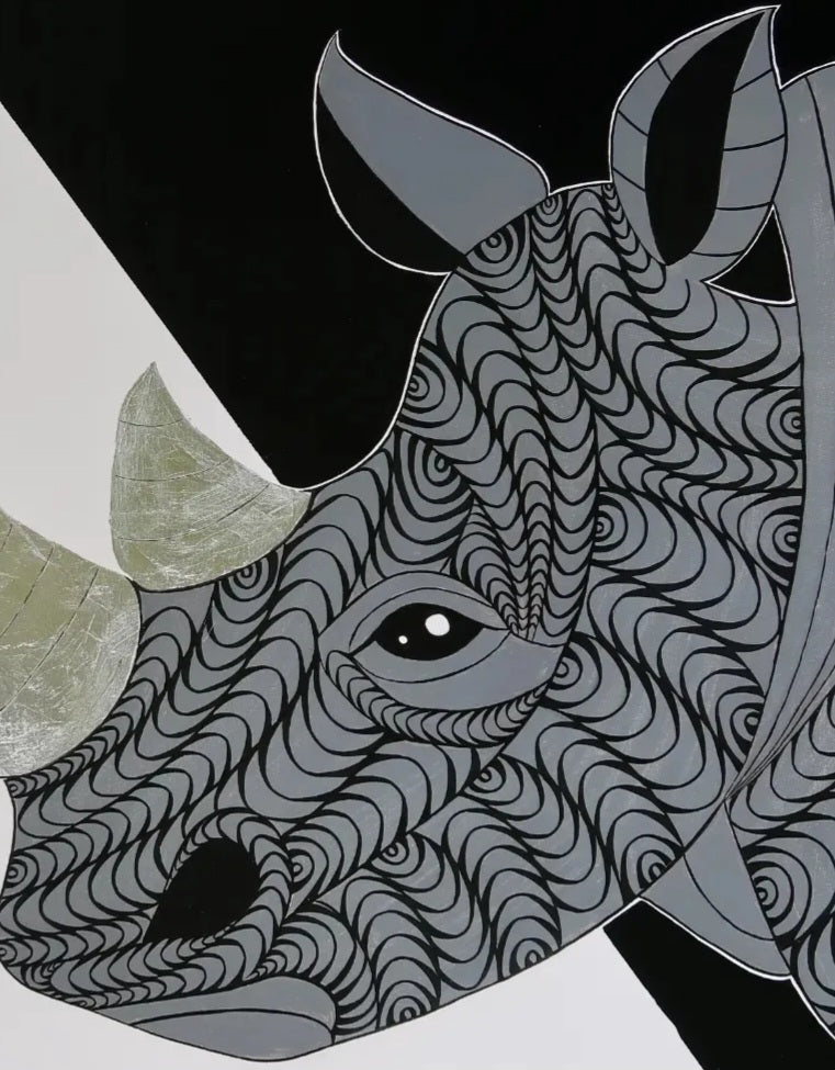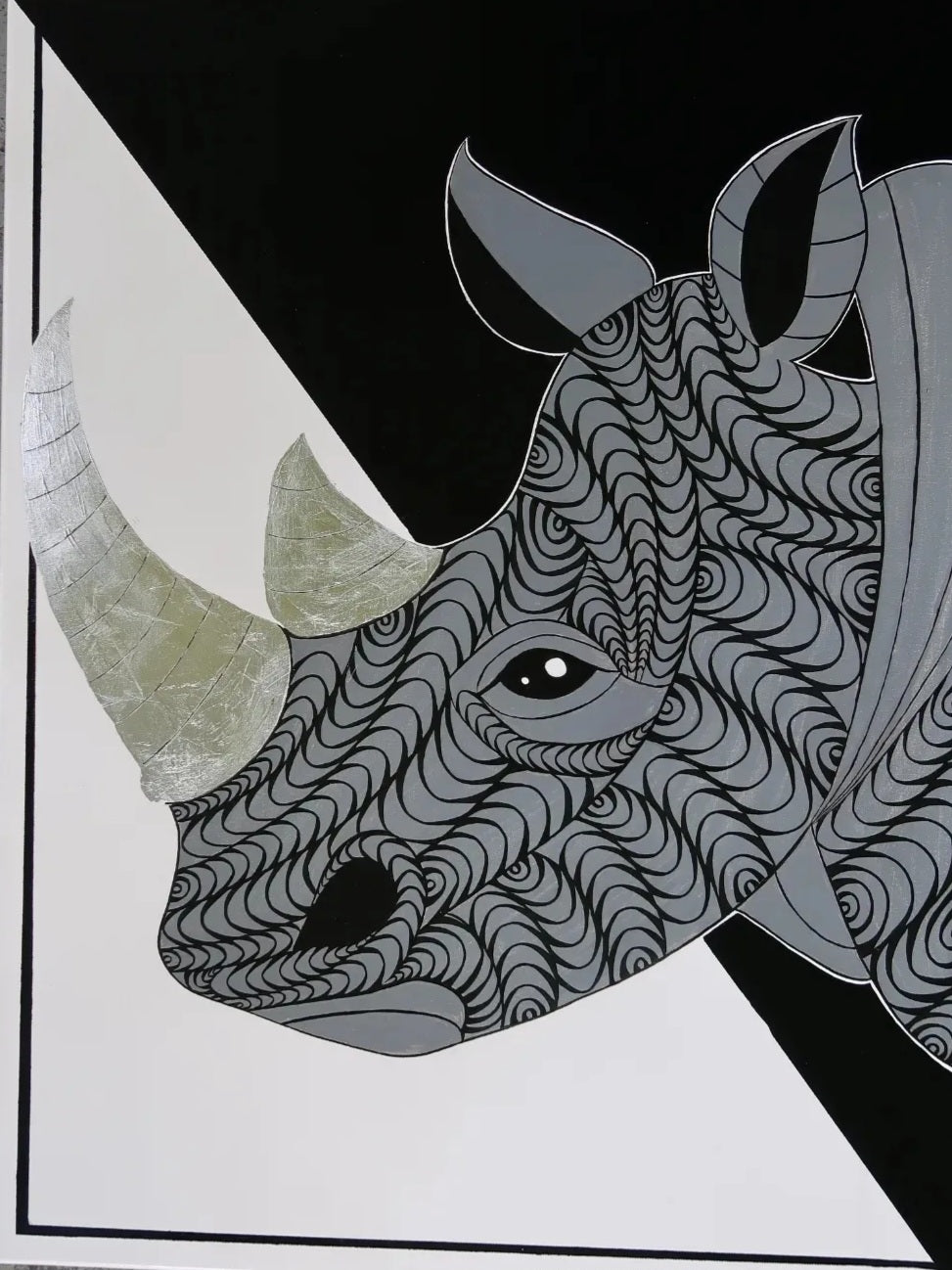 Meet “Strength” — a bold "30x 40", one-of-a-kind abstract rhino painted with metallic silver horns and over a year of intention. This isn’t just wall art—it’s a statement of resilience and wild beauty.